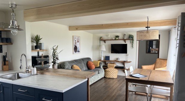 Chalet with an exceptional view of Baie de Plaisance, Entry Island, the port of Cap-aux-Meules and Le Havre-aux-Maisons. Located less than 1 km from the boat, it is close to everything, in the heart of the Islands, while being very quiet and far from the road