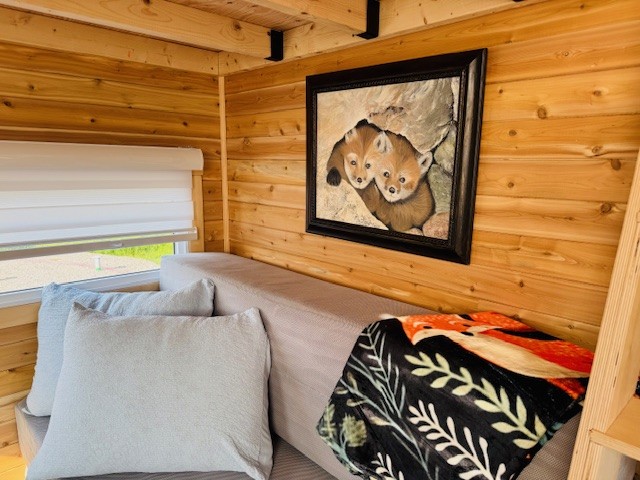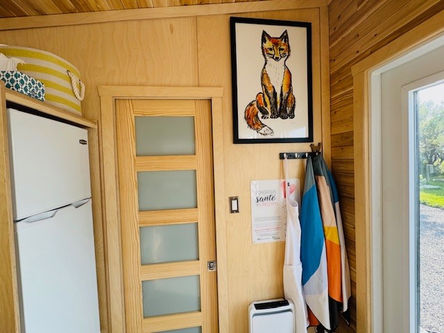 This Refuge is undoubtedly a tribute to my father Yves, who had a special fondness for them. I like to believe that he comes to say hello through this magnificent red animal. Sometimes, here in the yard, he comes around to check if everything is okay—make sure to say hello to him! In this little orange fox-shaped space, you'll surely be "fox-tastic" with your family or as a couple! Dog friends are also welcome in this accommodation. You will also find on the Eco-Refuges Plaisance website, La Cache du Renard and the "Trail" du Renard, a resting and relaxing area among the trees, with a view of the protected wetland.