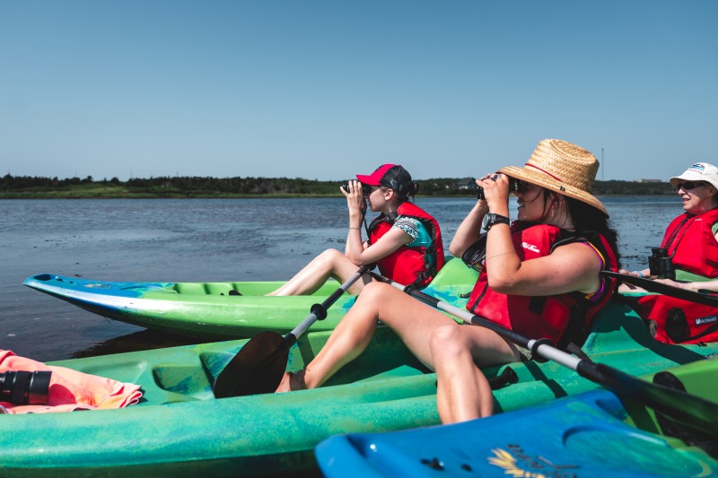 Chutt, on a beau être d'la visite, soyons discrets! On va filer sur l'eau comme le cormoran, visiter la colonie du héron, ouvrir le garde-manger du grand-chevalier, explorer les alentours de la lagune et de la Baie de Clarke. Plumes imperméables, histoire du Cap-de-l'Est... on va en apprendre des secrets de famille.