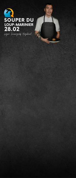 Découvrez un menu 5 services d'exception où l'héritage du Groenland rencontre le terroir des Îles. Sous la direction du chef innovateur groenlandais, Inunnguaq Hegelund, épaulé par une brigade de chefs composée de Jacques Leblanc, Yannick Ouellet et Julien Renaud Tremblay, découvrez une table mémorable où le patrimoine se transforme en art. Une soirée inspirante où chaque saveur raconte une histoire de culture et de passion. Vivez une expérience gastronomique, audacieuse, raffinée et profondément authentique.