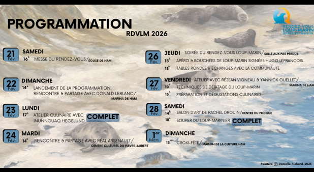Événement rassembleur, le Rendez-vous loup-marin a vu le jour par la volonté d'une communauté désireuse de célébrer et de perpétuer la tradition entourant la chasse aux loups-marins. C'est un événement PAR et POUR cette communauté qui le porte avec fierté depuis maintenant 17 ans. Pour l'édition 2026, le Rendez-vous loup-marin mettra l'accent sur la viande de loup-marin et les savoir-faire qui l'entourent. Cette thématique viendra enrichir la célébration et la reconnaissance de toutes ces années de travail, d'engagement et de mobilisation autour de l'utilisation rationnelle et circulaire de cette ressource. À la programmation, on retrouvera les activités phares comme la soirée loup-marin et le souper du loup-marinier, tout en ajoutant un important volet culinaire. Les participant.e.s pourront ainsi vivre l'expérience complète : observer et apprendre à débiter la carcasse, découvrir les techniques d'apprêt et déguster la viande sous différentes formes, du prêt-à-manger à la gastronomie. Ces ateliers pratiques permettront de rendre ce savoir accessible à tous. L'édition 2026 mettra en lumière l'évolution des pratiques, du travail ancestral aux innovations d'aujourd'hui. Elle offrira aussi un espace de transmission et de partage multiculturel entre Madelinots, communautés autochtones et divers experts. Un rendez-vous culinaire et collaboratif qui célèbre le patrimoine tout en ouvrant la porte à de nouvelles rencontres!
